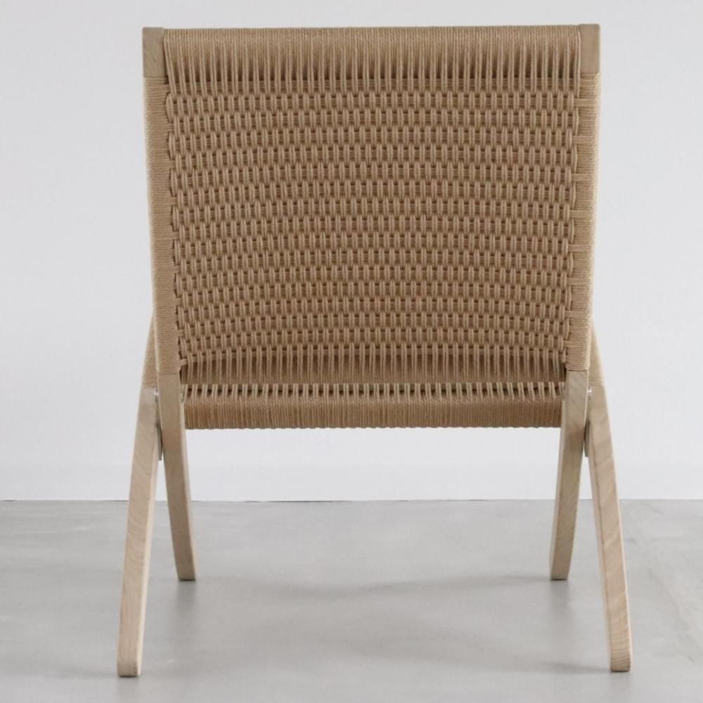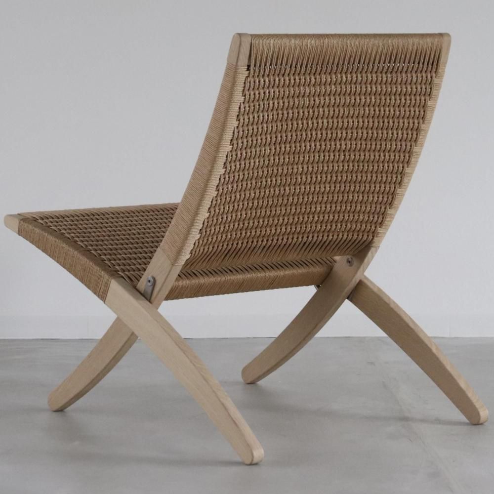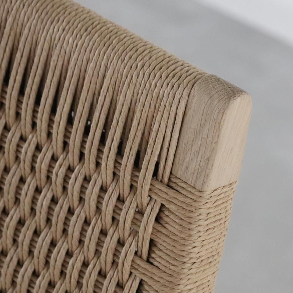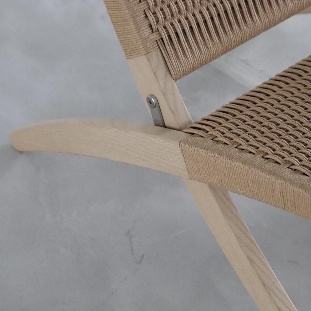 ペーパーコードは樹脂を含浸させた紙製のコードで、元々は収穫した麦などを束ねる等の用途で使用されていました。それまで使用されてきた籐などに比べ、品質が全体にわたり均一であることや座面として十分に強度があること、さらに使用感も優れている等の理由から1940年代より椅子に用いられたと言われています。適度な柔軟性があるためご使用の頻度により多少の伸びが生じます。また、表面加工を施していない為におこる経年変化も特徴です。